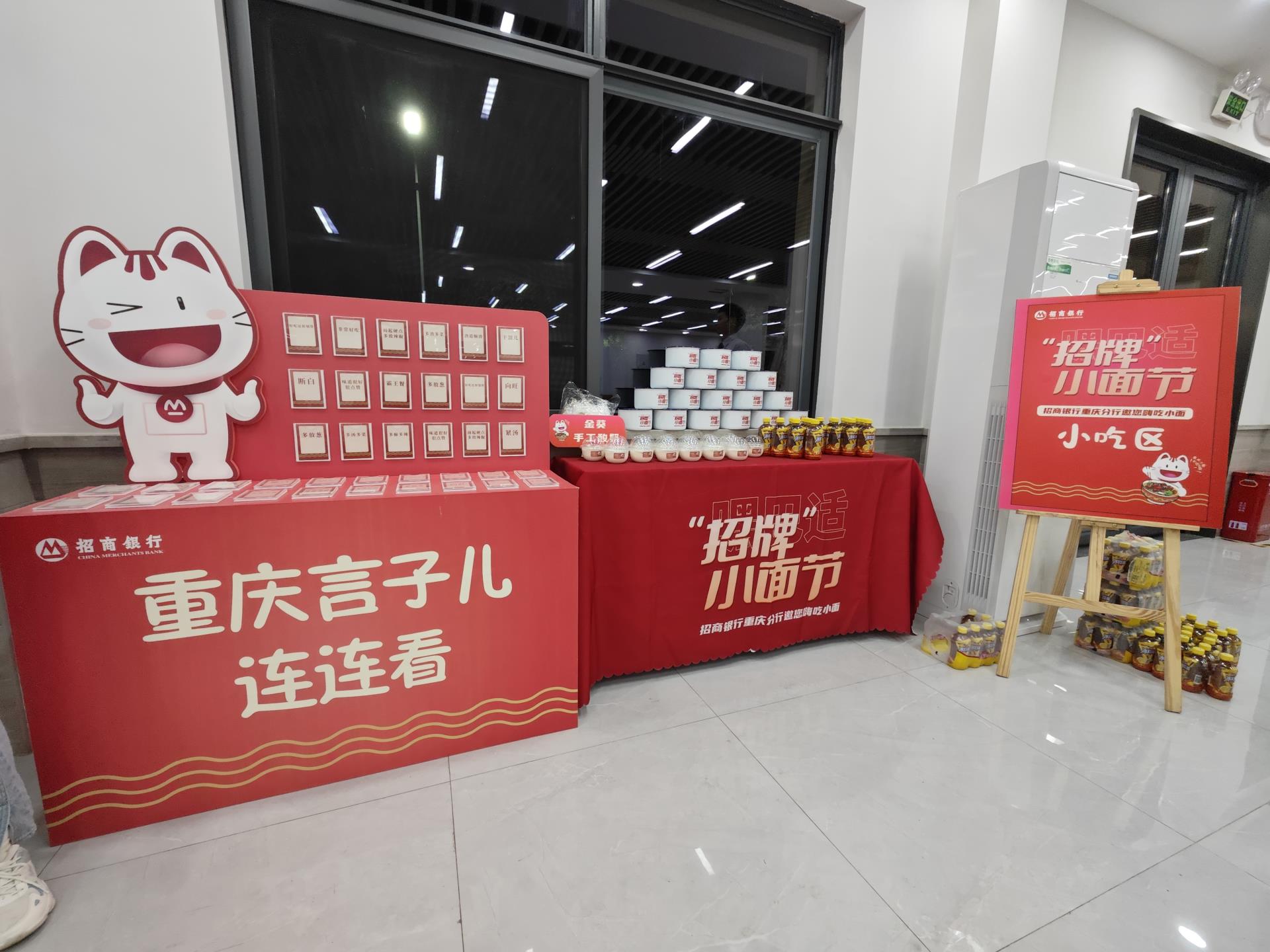 活动现场,会凌食堂布置的如同节日般喜庆,来自重庆小面50强 “愚小面”的厨师们现场制作最正宗的重庆小面,一碗碗香气四溢的重庆小面,吸引员工们纷纷品尝,大家赞不绝口。招商银行为参与活动的员工提供了专属优惠,带来了一系列金融服务咨询及抽奖、猜字谜等游戏,为员工提供了一次好吃又好玩的双重体验。